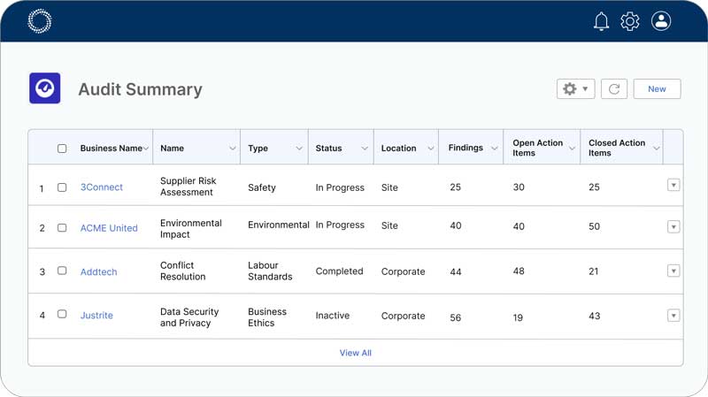 Receive real-time updates on supplier requests and audit progress and monitor outstanding action items to ensure you work with responsive suppliers.